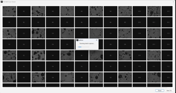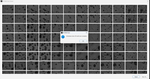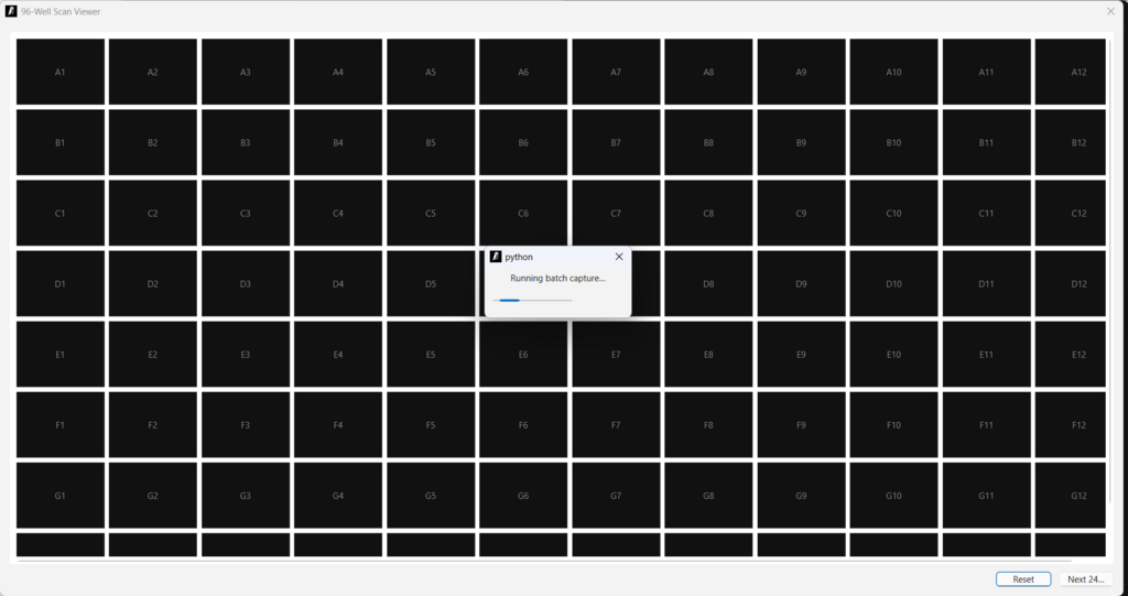 Alle 96 Wells wurden erfasst – bereit für Stitching und Analyse.